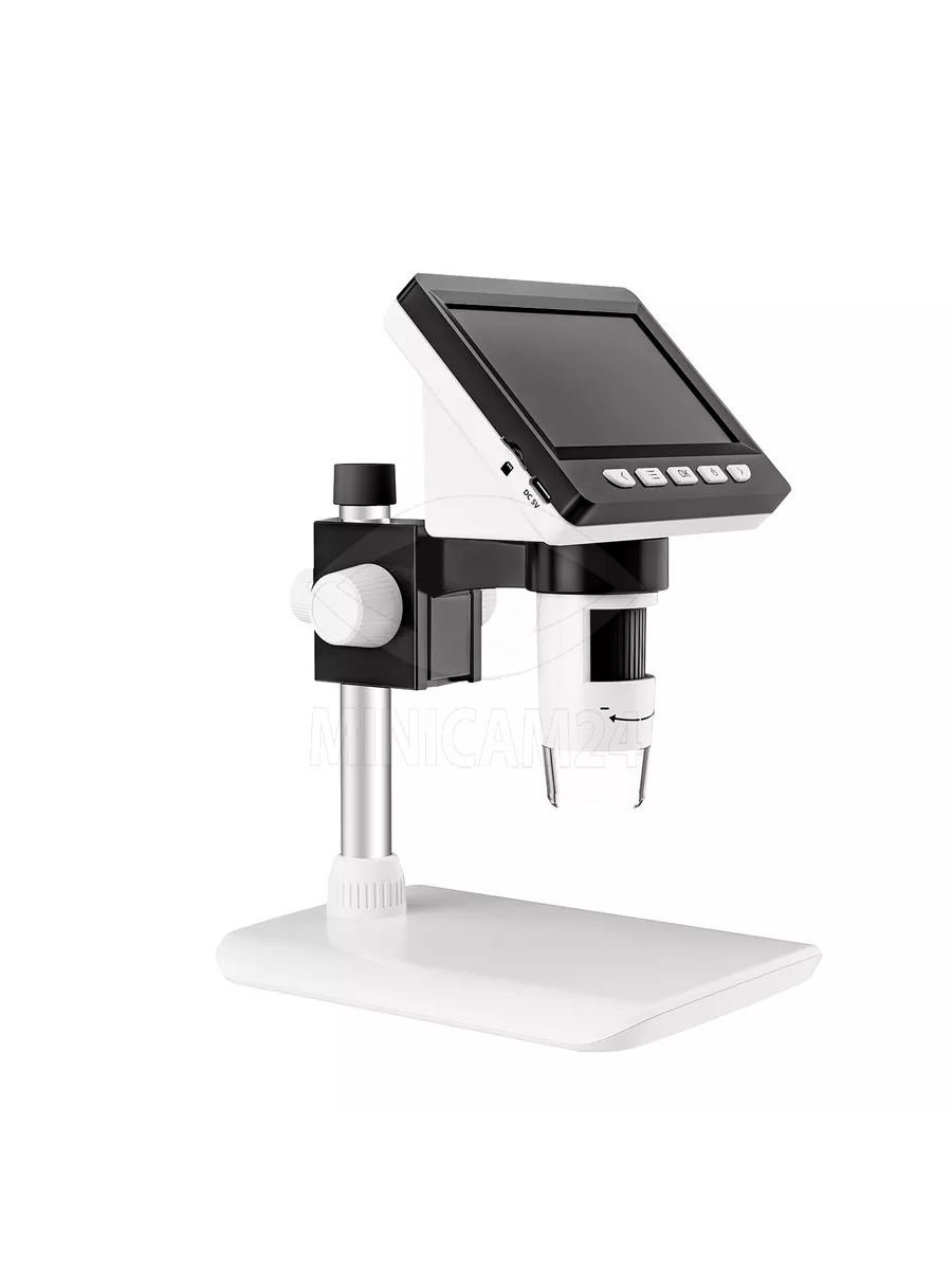 Настольный микроскоп на основе цифровой камеры с высоким разрешением. Прибор оснащен цветным дисплеем диагональю 4.3 дюйма и светодиодами подсветки предметного стола. Питание от встроенного аккумулятора рассчитанного на 5 часов непрерывной работы. Запись фото и видео на ПК производится по кабелю.