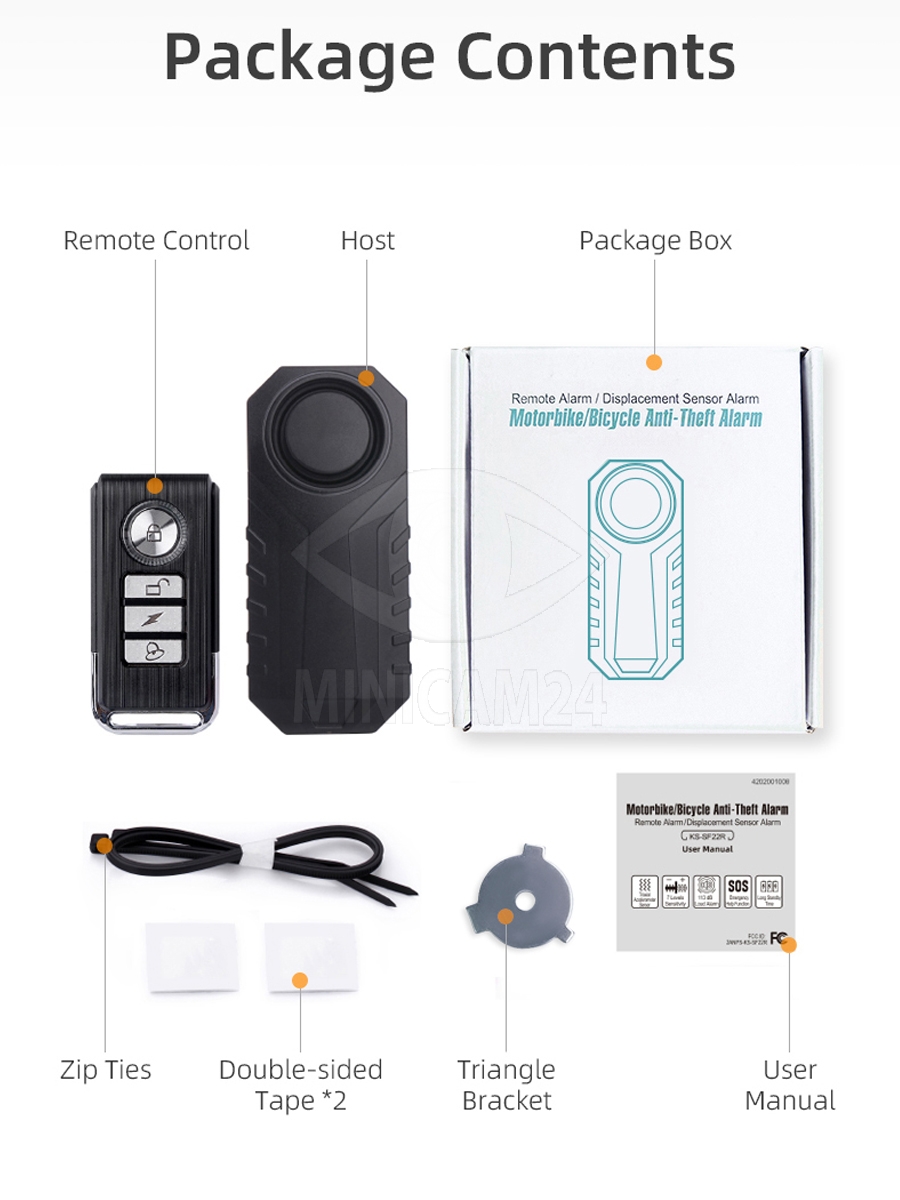 Сигнализация для велосипеда с пультом Cycle D предотвращает угон транспортных средств. Велозамок можно установить на самокат, скутер, велосипед, мопед на руль, под сидение или на раму с помощью пластиковых хомутов. Благодаря защите корпуса от влаги и пыли устройству не страшны осадки. Велосипедный замок в случае попытки угона издает громкий звуковой сигнал, который может отключить только владелец с пульта. Чувствительность можно регулировать в рамках 7 уровней. Также пользователь может выбрать одну из 6 мелодий. Велозамок с сигнализацией поддерживает функцию поиска в радиусе 20 метров. Питается от трех батареек типа ААА или щелочной батарейки.