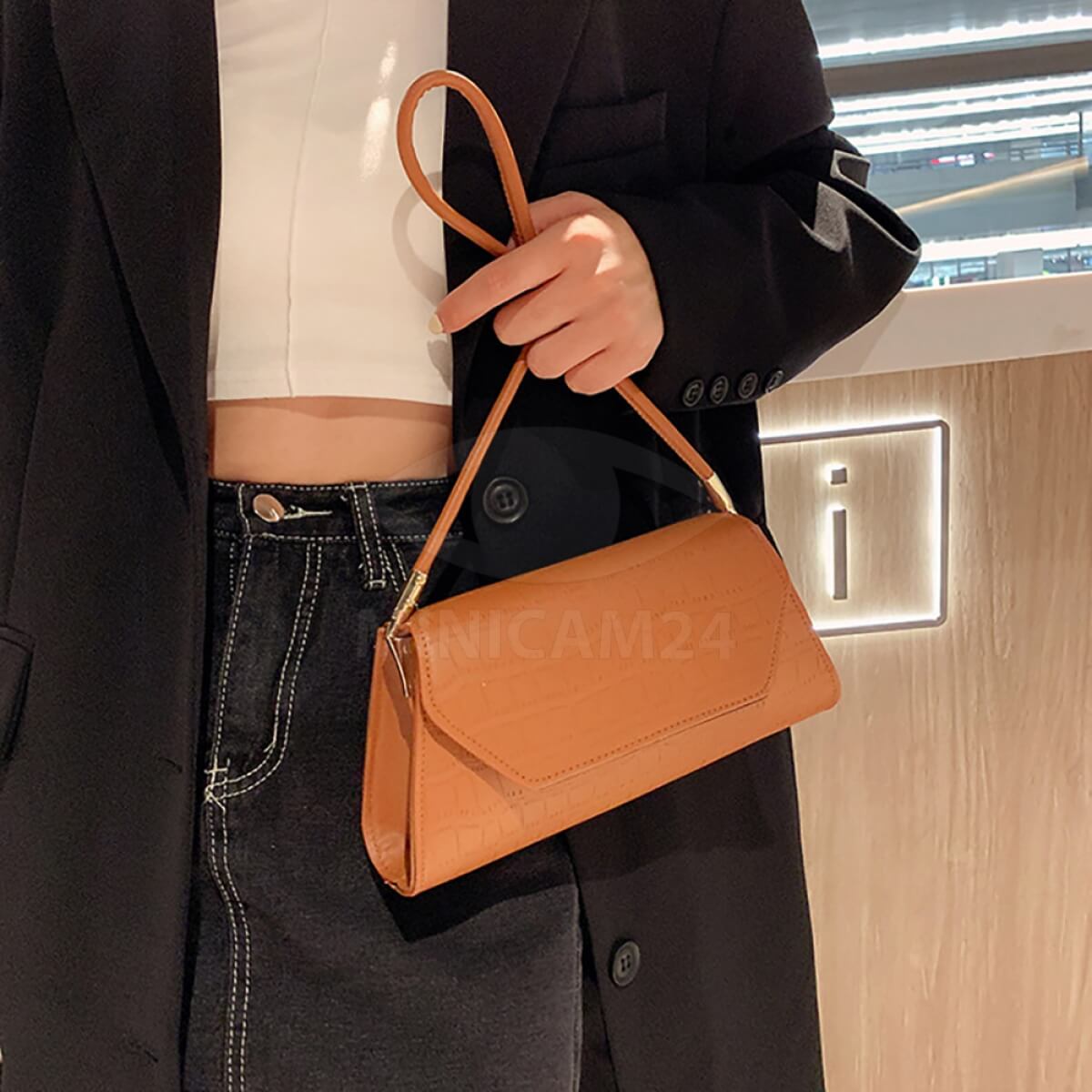 Сумка-багет женская Stella коричневая в форме трапеции – идеальный вариант для выхода на праздничные мероприятия и ежедневной носки. Сумка женская выполнена из белой экологической кожи, которая не требует особого ухода. Мягкая экокожа хорошо переносит холод и жару, не трескается в минусовую температуру, не выцветает под действием ультрафиолета и не боится дождя или снега. Сумка через плечо имеет прочный каркас, поэтому не теряет своей формы. Клапан застегивается на магнитные замки. Длина ручек не регулируется. Прочная хлопковая подкладка не разрывается из-за острых предметов. Внутри сумки-багета есть объемный отсек и небольшой кармашек на молнии для мелочей.